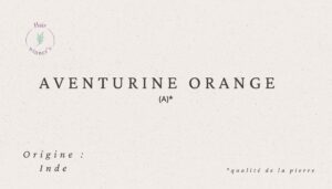 L’aventurine orange ou également connue sous le nom d’aventurine pêche, est une pierre de couleur orange, plus ou moins foncée. Elle peut être translucide ou opaque. Cette pierre est composée de dioxyde de silicium contenant de l’hématite.