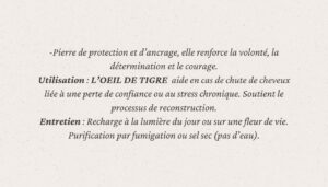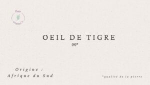 L’Oeil de Tigre une variété de Quartz, principalement composée de silice, et de fibres de crocidolite qui ont été minéralisées pour donner son aspect chatoyant.